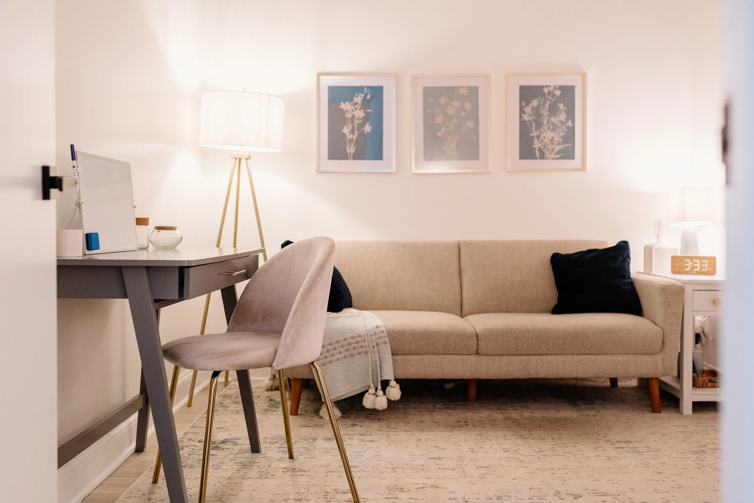 Something we are really proud of here at Health in Tandem is our office space! We wanted it to be a very calming, inviting, and refreshing environment as we know that the space we surround ourselves in can have an impact on our mental health. Our vision for this space was to be orderly, crisp, and clean while still being soothing and relaxing.
